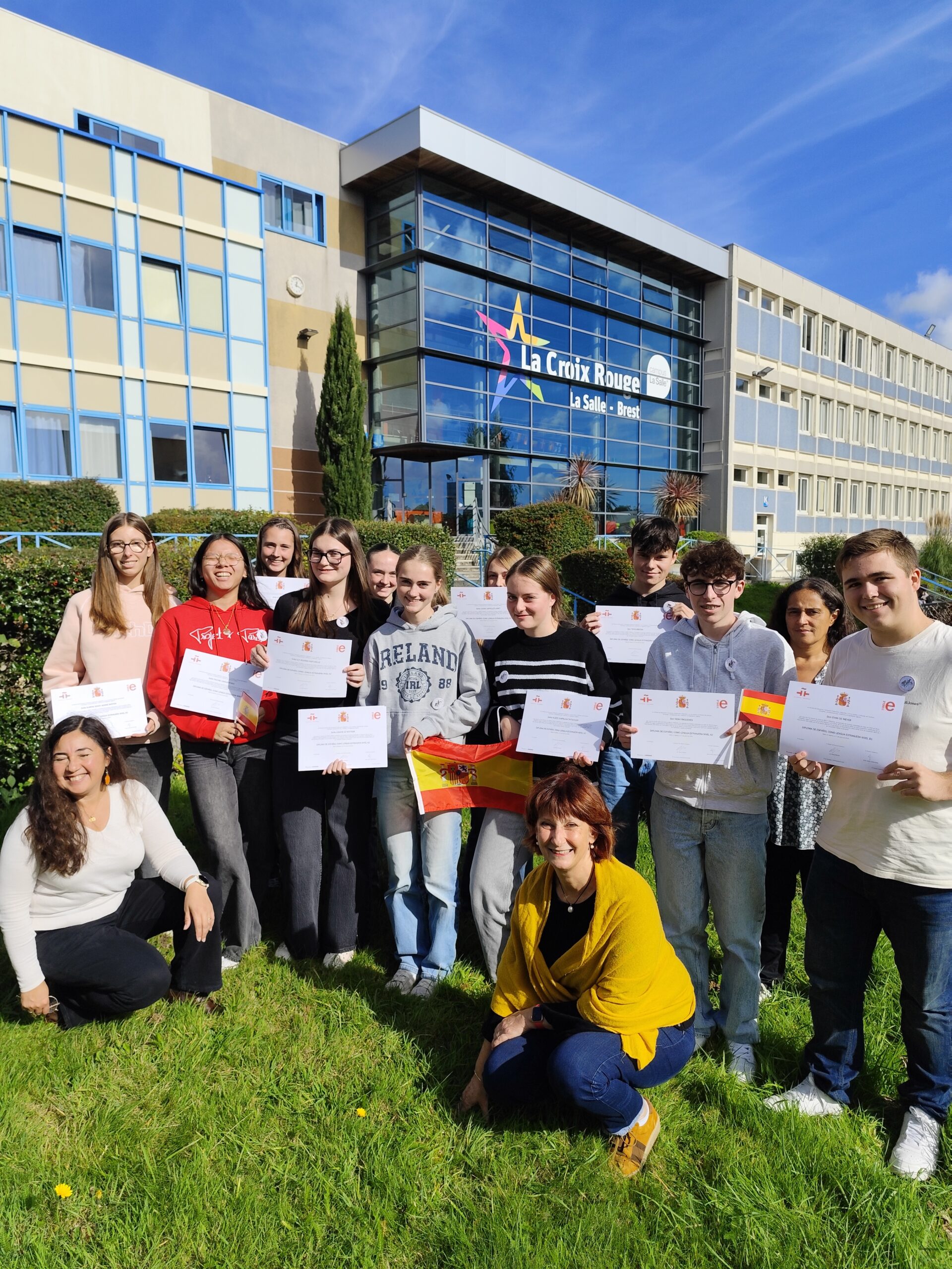 Les élèves de la Section européenne hispanique ayant passé les épreuves de la Certification DELE-F en mars dernier, alors qu’ils étaient en Seconde, se sont retrouvés Lundi 29 septembre lors de la remise des diplômes. Les professeurs d’espagnol de la Section ont remis au nom de l’institut CERVANTES, le diplôme certifiant le niveau A2 pour certains ou B1 pour d’autres.