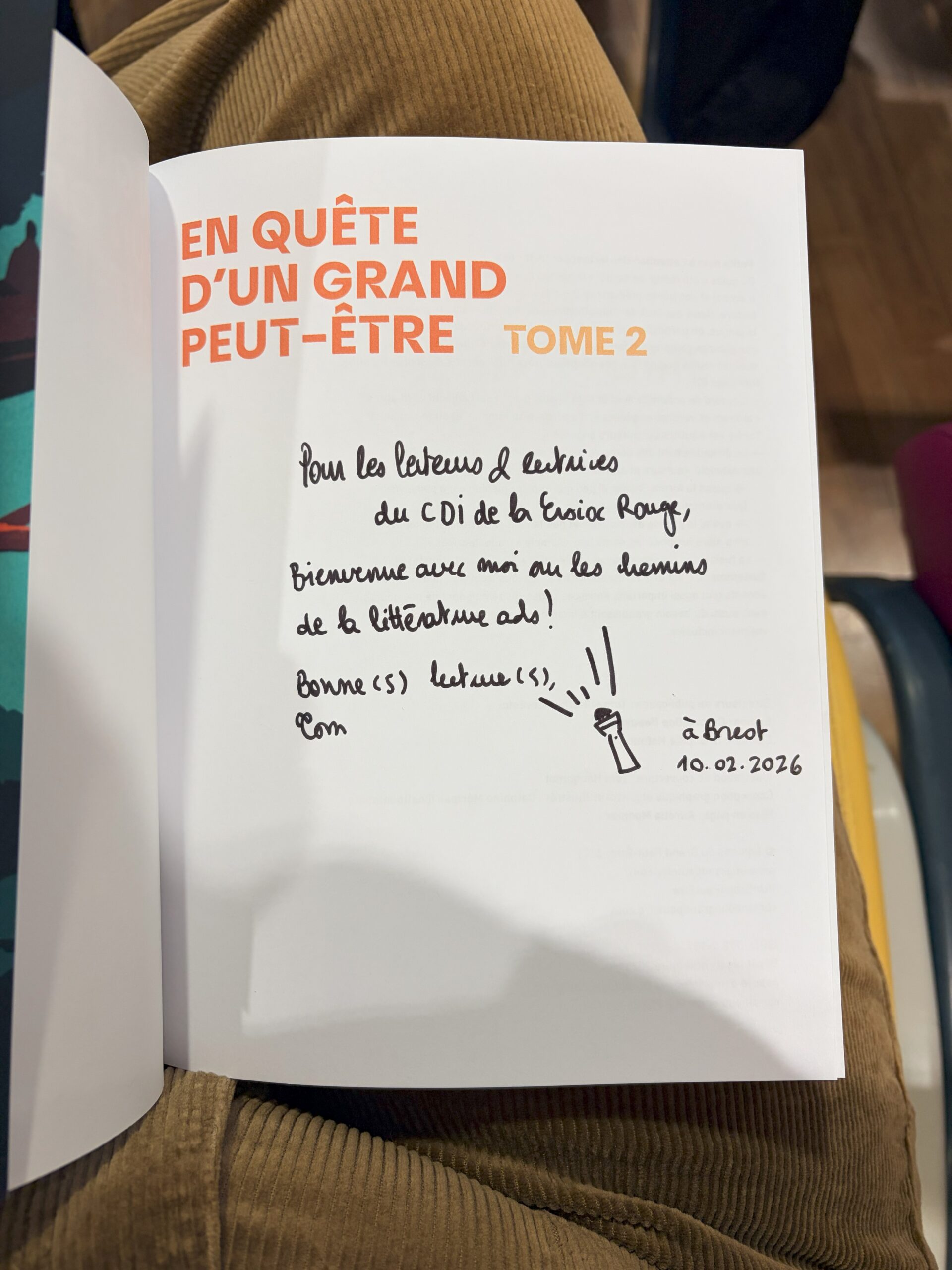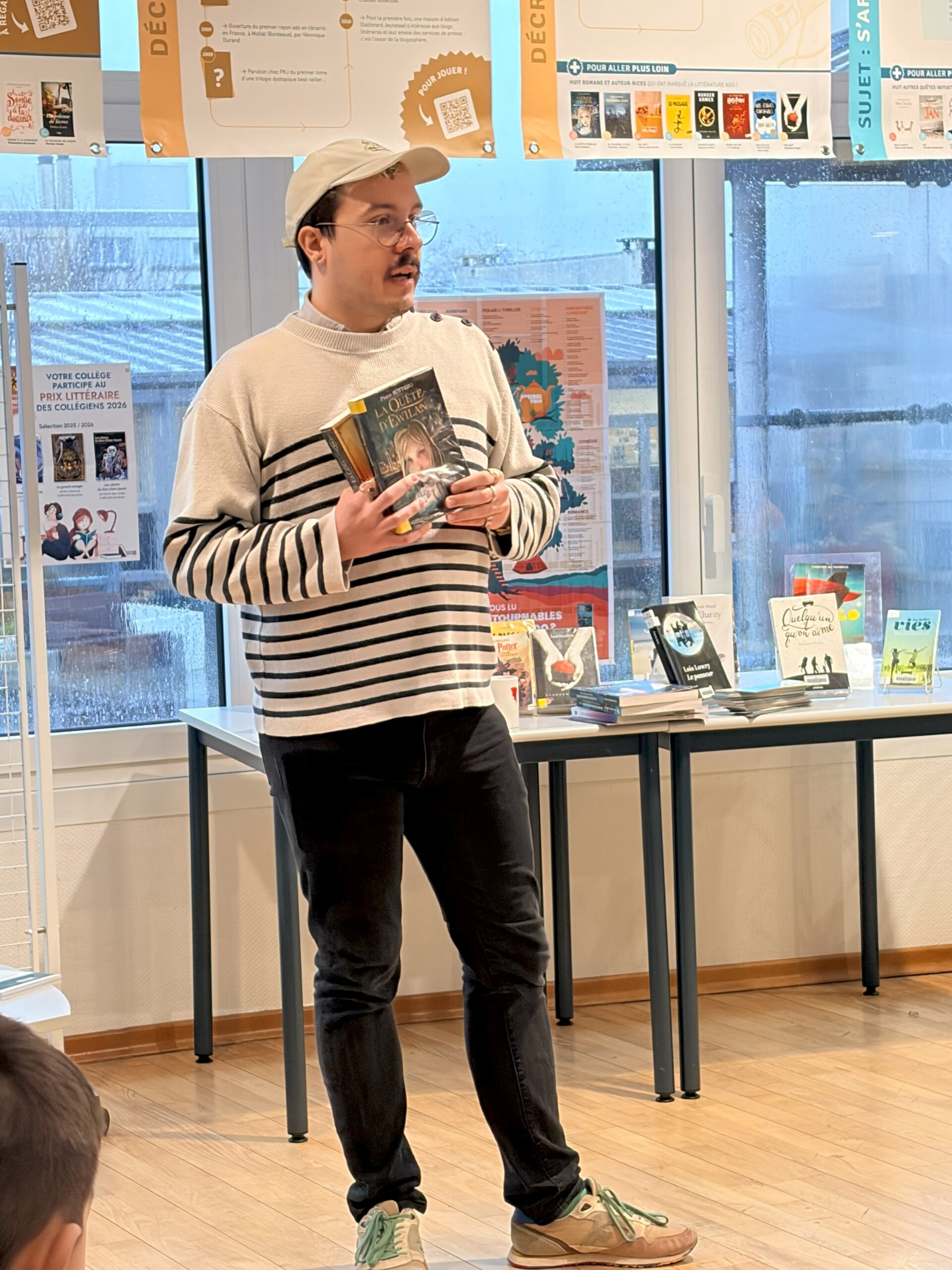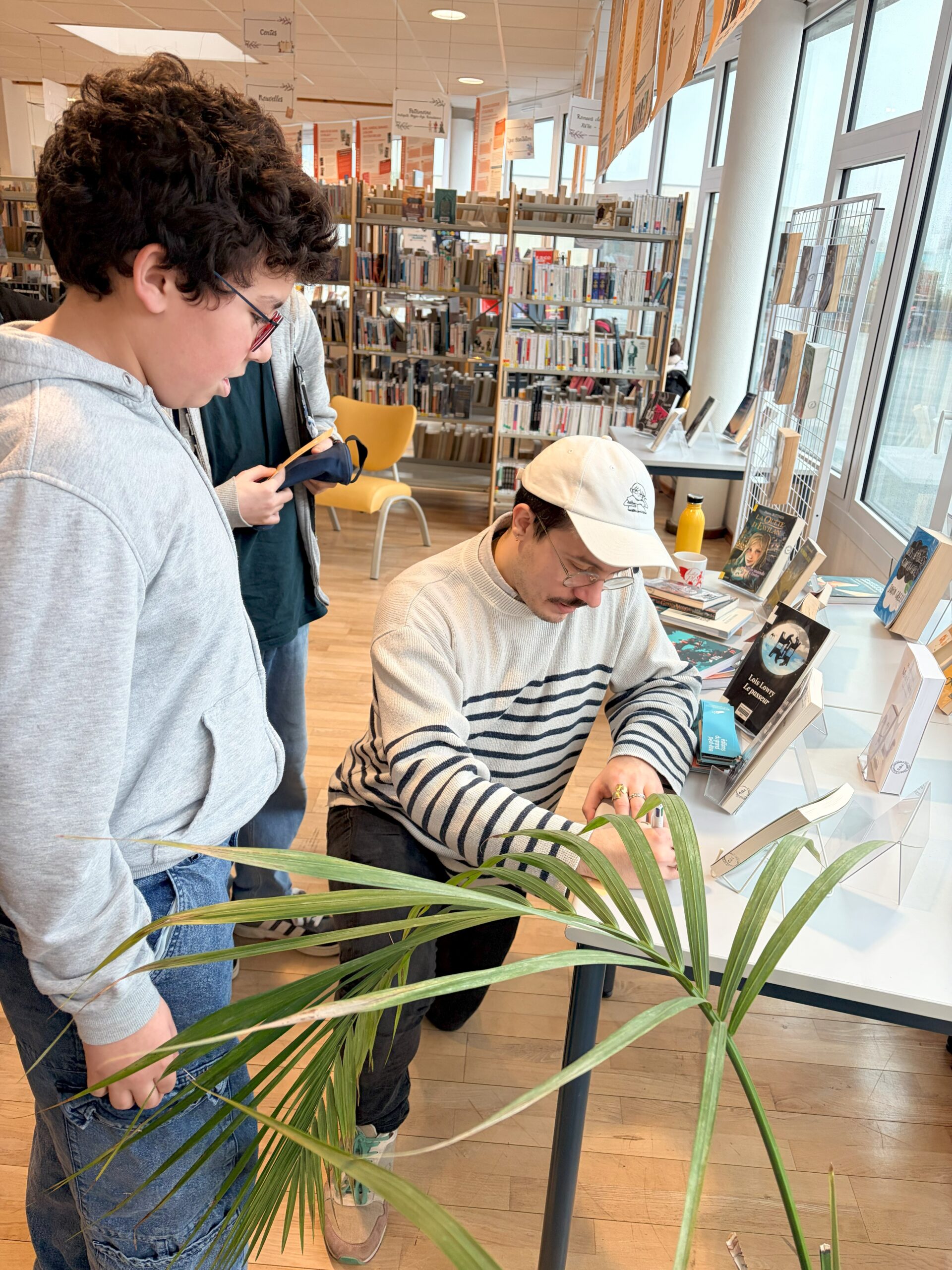 Ce mardi 10 février, les classe de 5e1, 5e2 et 5e5 ont eu la chance de rencontrer Tom Lévêque au CDI du collège dans le cadre du Prix Littéraire des collégiens. Spécialisé dans la littérature jeunesse, ce jeune auteur a su capter l’attention des élèves en utilisant l’exposition, dont il est co-créateur avec son frère Nathan Lévêque, actuellement installée au CDI et intitulée “Sur les chemins de la littérature ado !”. Cette dernière analyse la littérature jeunesse sous différents angles et propose les 100 romans incontournables dédiés aux adolescents. Chaque classe a ainsi pu poser mille et une questions autour de l’écriture, des thématiques abordées dans les romans jeunesses, des émotions que l’on peut ressentir en lisant ce genre d’ouvrages, etc. Un échange riche conclu par une séance de dédicaces sur des marque-pages offerts par l’auteur à nos élèves ravis.