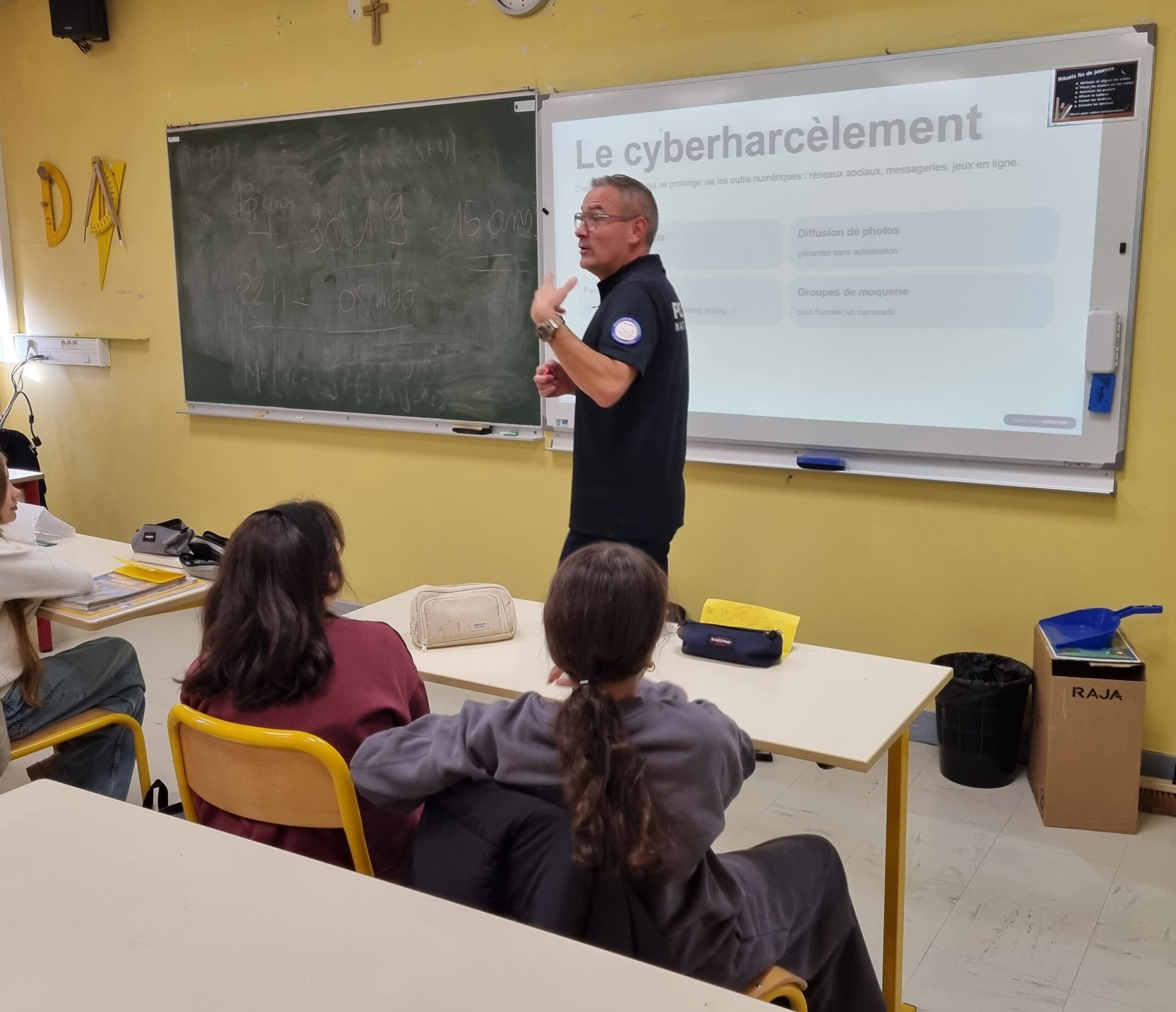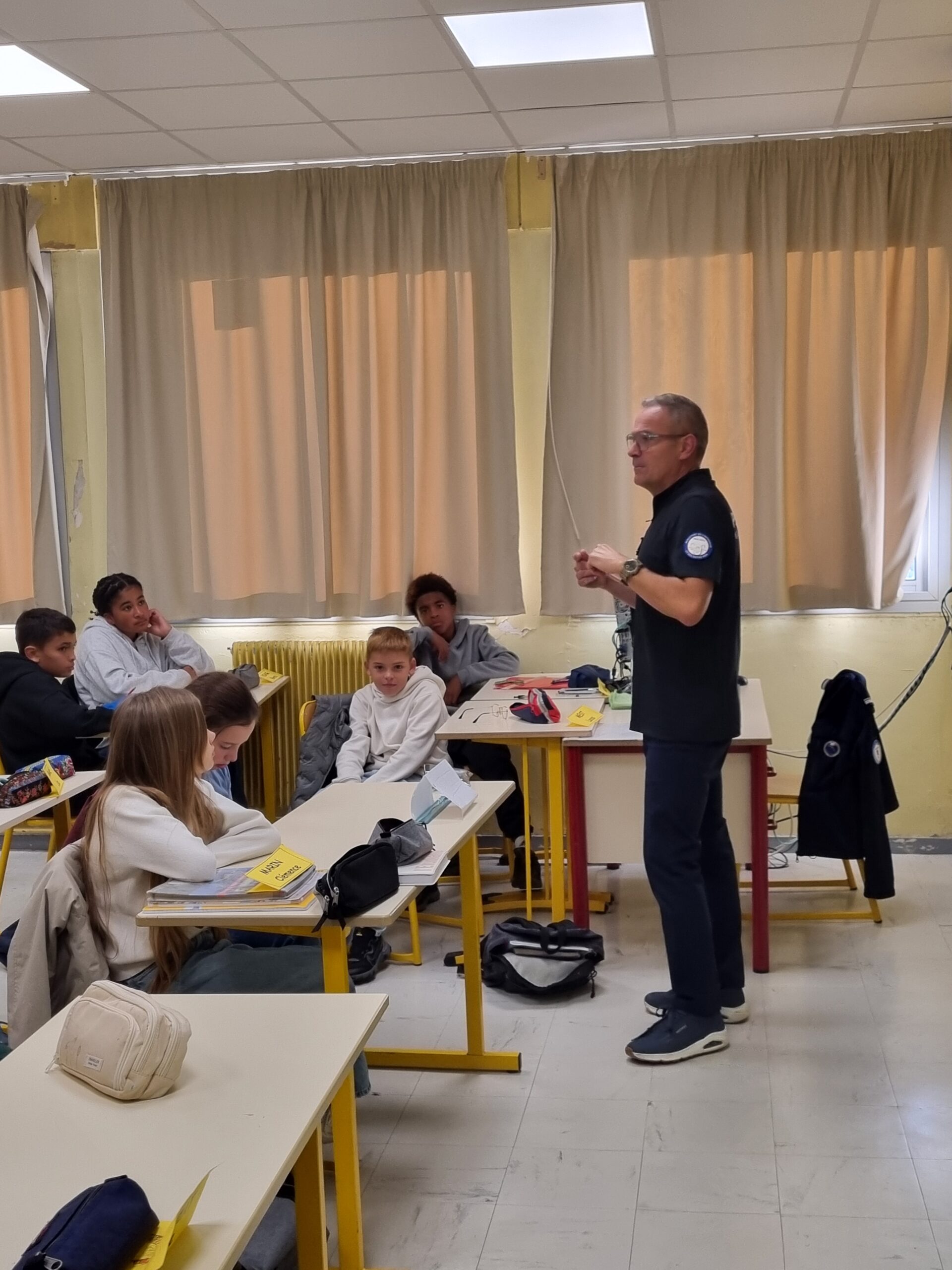 Toute la semaine, Mr Caro, policier formateur, est intervenu auprès des classes du niveau 5ème. Le policier a sensibilisé les élèves sur la lutte contre le harcèlement et les dangers d’Internet.